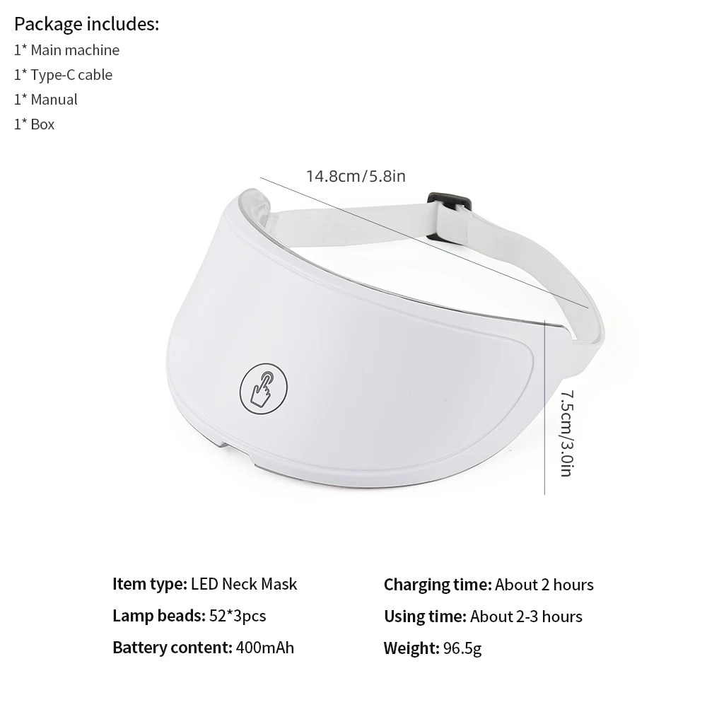 • علاج بضوء أحمر للرقبة :تساعد ميزة علاج الرقبة بالضوء الأحمر على تشديد ورفع منطقة الرقبة ، وتقليل ظهور التجاعيد والترهل.